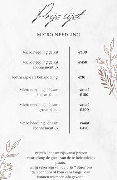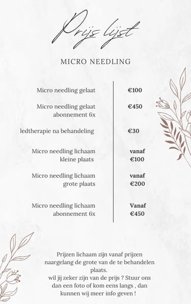 Micro needling is een cosmetische behandeling waarbij kleine naalden in de huid worden gebruikt om microscopisch kleine gaatjes te maken. Dit proces stimuleert de natuurlijke productie van collageen en elastine, wat kan leiden tot een gladdere, stevigere huid. De behandeling wordt vaak gebruikt om fijne lijntjes, rimpels, acne littekens en pigmentvlekken te verminderen. Daarnaast kan micro needling ook helpen bij het verbeteren van de algehele teint en textuur van de huid. Het is een relatief snelle en effectieve procedure die weinig tot geen hersteltijd vereist, waardoor het een populaire keuze is geworden voor veel mensen die op zoek zijn naar huidverbetering.
