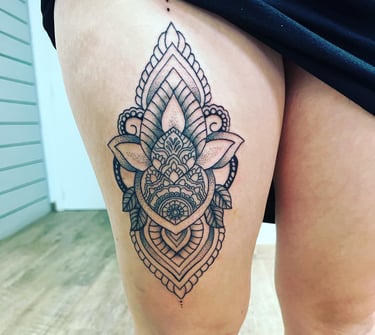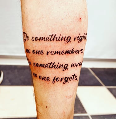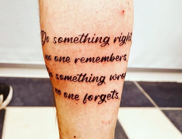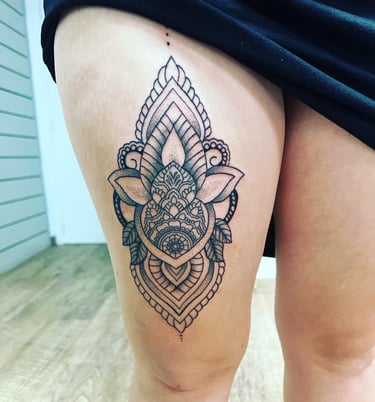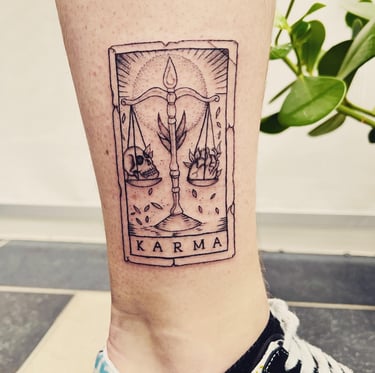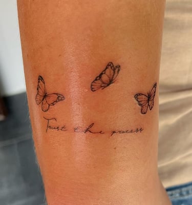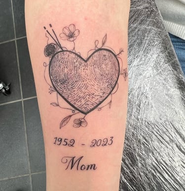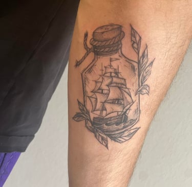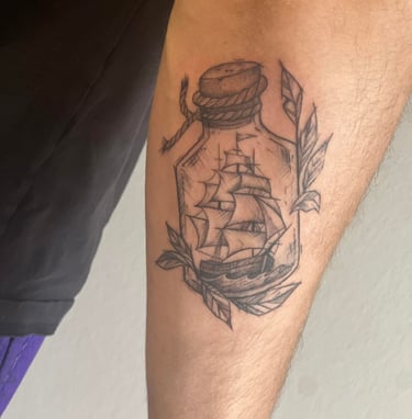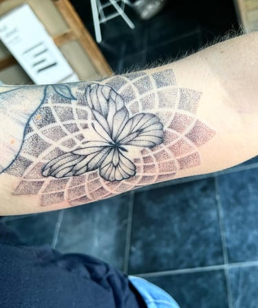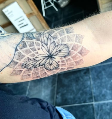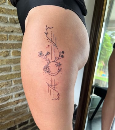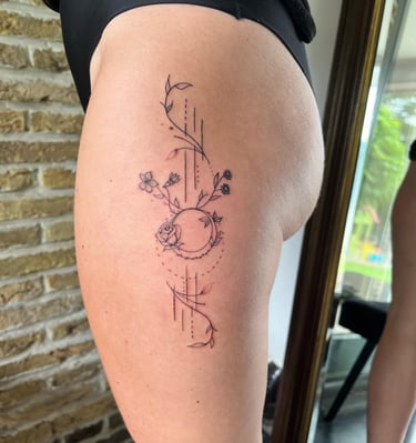 ik ben zelf altijd heel zot geweest van tattoo's , al sinds ik klein was . mijn papa had veel tattoo's en ik wilde later dus ook veel tattoo's . eens ik oud genoeg was , plaatste ik mijn eerste tattoo, en zoals iedereen wel weet , eens je start met tattoo's kan je niet meer stoppen . dus zette ik er nog 1 en nog 1 en .... ik ben afgestudeerd als zorgkundige en heb altijd in een rusthuis gewerkt. tot een kennis van mij begon met tattoeëren en mensen nodig had om onder begeleiding van een ervaren tattooartiest te oefenen .nu ben ik nog altijd de gelukkige eigenaar van een mooi maantje op mijn rug die door haar geplaatst werd ! ondertussen is ook zij uitgegroeid tot een fantastische artiest ! zo was ik aan het denken of dit ook iets voor mij zou zijn . eerst denk je dat dit misschien niet haalbaar is, en dat dit jou nooit zou lukken , maar ik begon aan mijn tattooportfolio en volgde een korte apprenticeship bij iemand. en zo startte mijn tattoocarriere in juni 2022. ik leer nog elke dag heel veel bij en ik ben ongelofelijk gelukkig dat ik de kans kreeg dit te mogen doen , en voor al de klantjes die mij in het begin de kans gaven om te groeien , en nu nog steeds ! een dikke mercie !